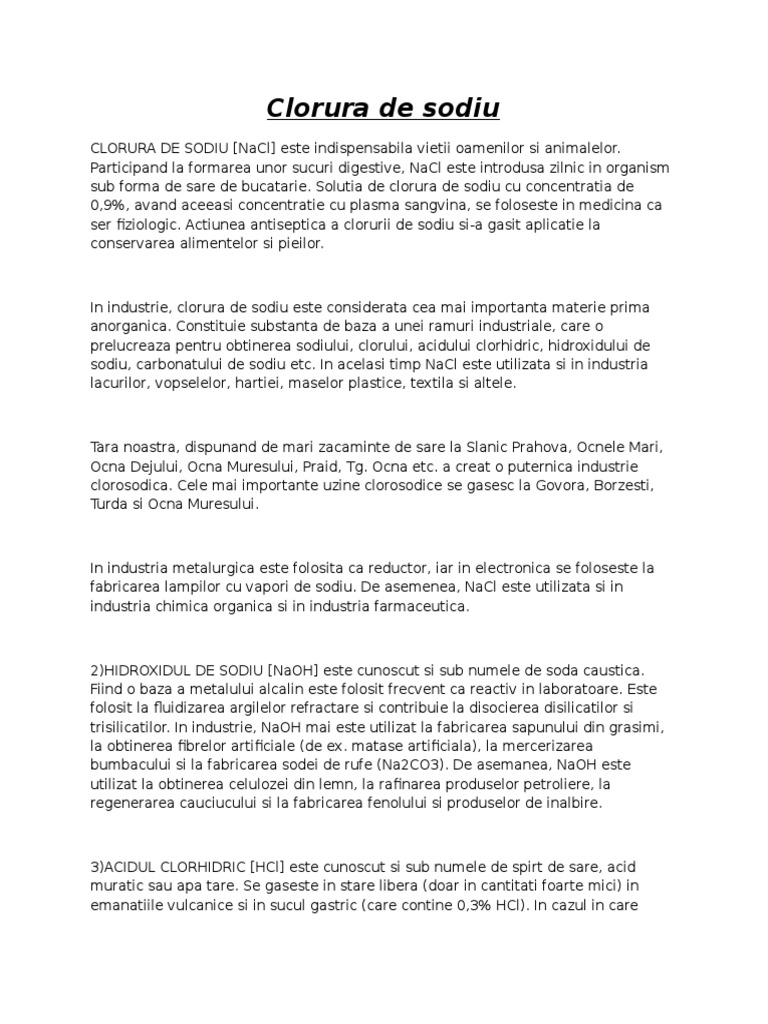 Clorura De Sodiu La Ce Se Foloseste