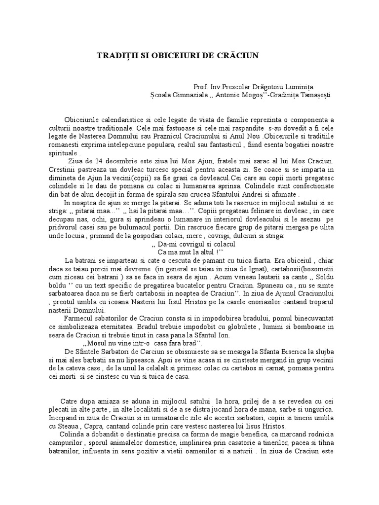 Traditii Si Obiceiuri De Craciun