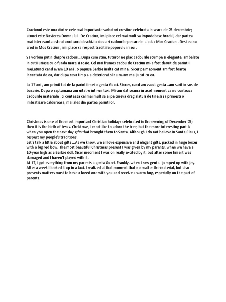 Eseu Despre Sarbatorile De Craciun Din Romania In Engleza Repedee