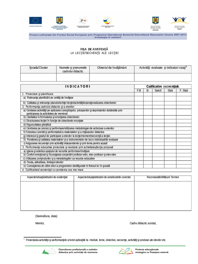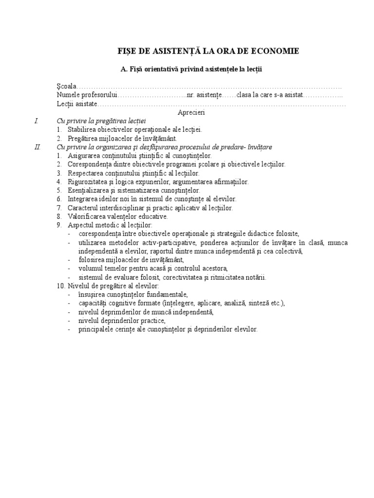 Fisa Pentru Asistenta La Ora