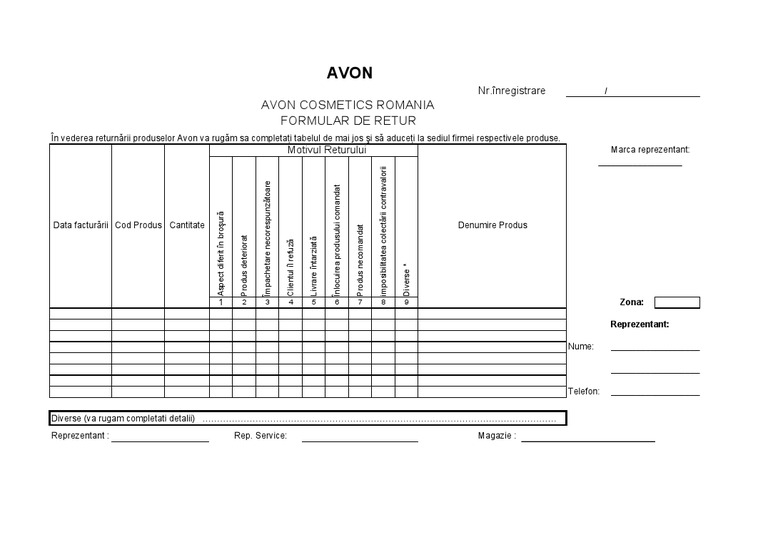 Formular Retur Avon Romania Srl